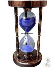 Antique Nautical Brass 9" Blue Liquid Sand Timer Ship Maritime Hourglass