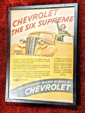 ••ORIGINAL•• 1938 CHEVROLET DEALER SHOWROOM FRAMED ADVERTISING POSTER •• 21 X 16