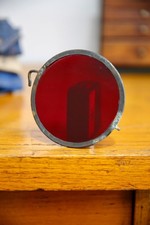 Vintage Antique Traffic Light Finder Red Glass Tinted Brass Car Accessory lens
