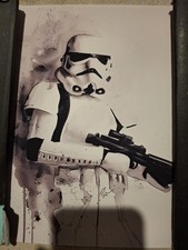 star wars stormtrooper w/blaster water color canvas print 8"x10" (p21)